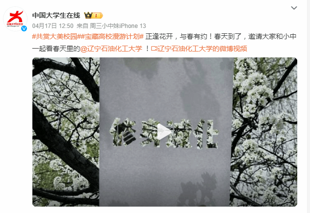 编者按:近日,教育部中国大学生在线官方微博、人民日报客户端·人民号、辽宁日报·辽望号等媒体平台对我校新媒体中心学生拍摄的学校创意春景视频进行了宣传报道。现将相关报道转载如下: