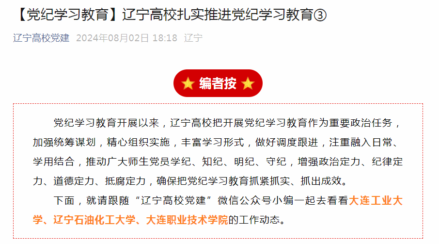 辽宁高校党建微信公众号:【党纪学习教育】辽宁高校扎实推进党纪学习教育③