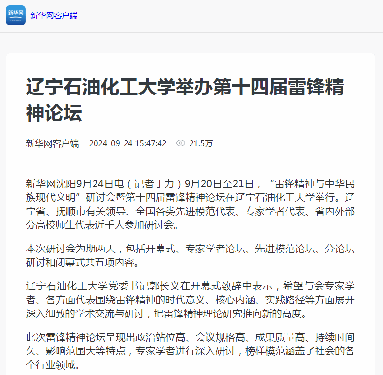 新华网客户端、全国高校思想政治工作网、人民论坛网、辽宁高校思政微信公众号、北斗融媒、东北新闻网、央视频、抚顺日报:国产亚洲综合一区二区三区_亚洲欧美日韩中文天堂_尤物在线观看视频不卡无码_国产最新精品亚洲2025不卡_亚洲成Av人在线观看片水蜜桃举行“雷锋精神与中华民族现代文明”研讨会暨第十四届雷锋精神论坛-国产亚洲综合一区二区三区_亚洲欧美日韩中文天堂_尤物在线观看视频不卡无码_国产最新精品亚洲2025不卡_亚洲成Av人在线观看片水蜜桃