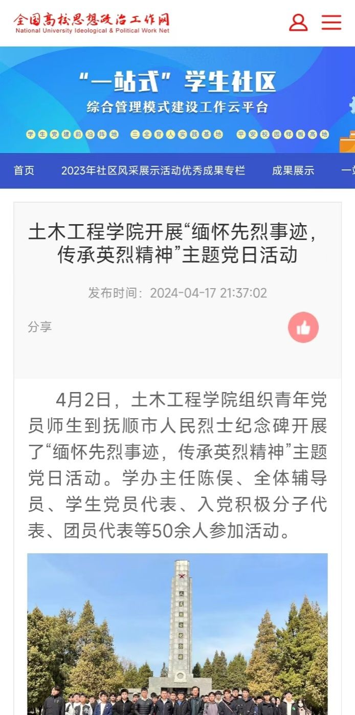全国高校思想政治工作网:土木工程学院开展“缅怀先烈事迹,传承英烈精神”主题党日活动