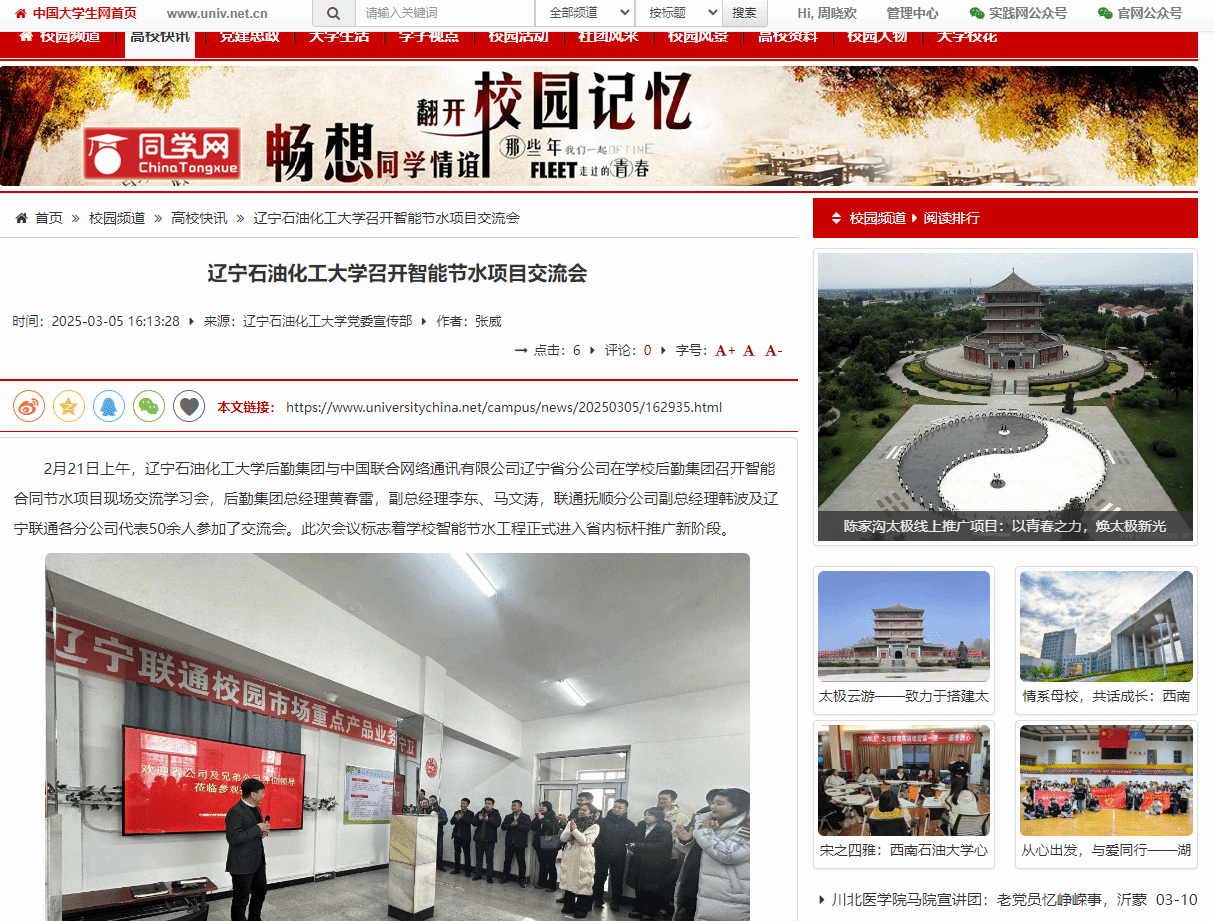 编者按:国产亚洲综合一区二区三区_亚洲欧美日韩中文天堂_尤物在线观看视频不卡无码_国产最新精品亚洲2025不卡_亚洲成Av人在线观看片水蜜桃后勤集团与中国联合网络通讯有限公司辽宁省分公司在学校后勤集团召开智能合同节水项目现场交流学习会,50余人参加了交流会。此次会议标志着学校智能节水工程正式进入省内标杆推广新阶段。辽宁日报·辽望号、中国大学生网、搜狐号等媒体平台对此进行了宣传报道。现将相关报道转载如下: