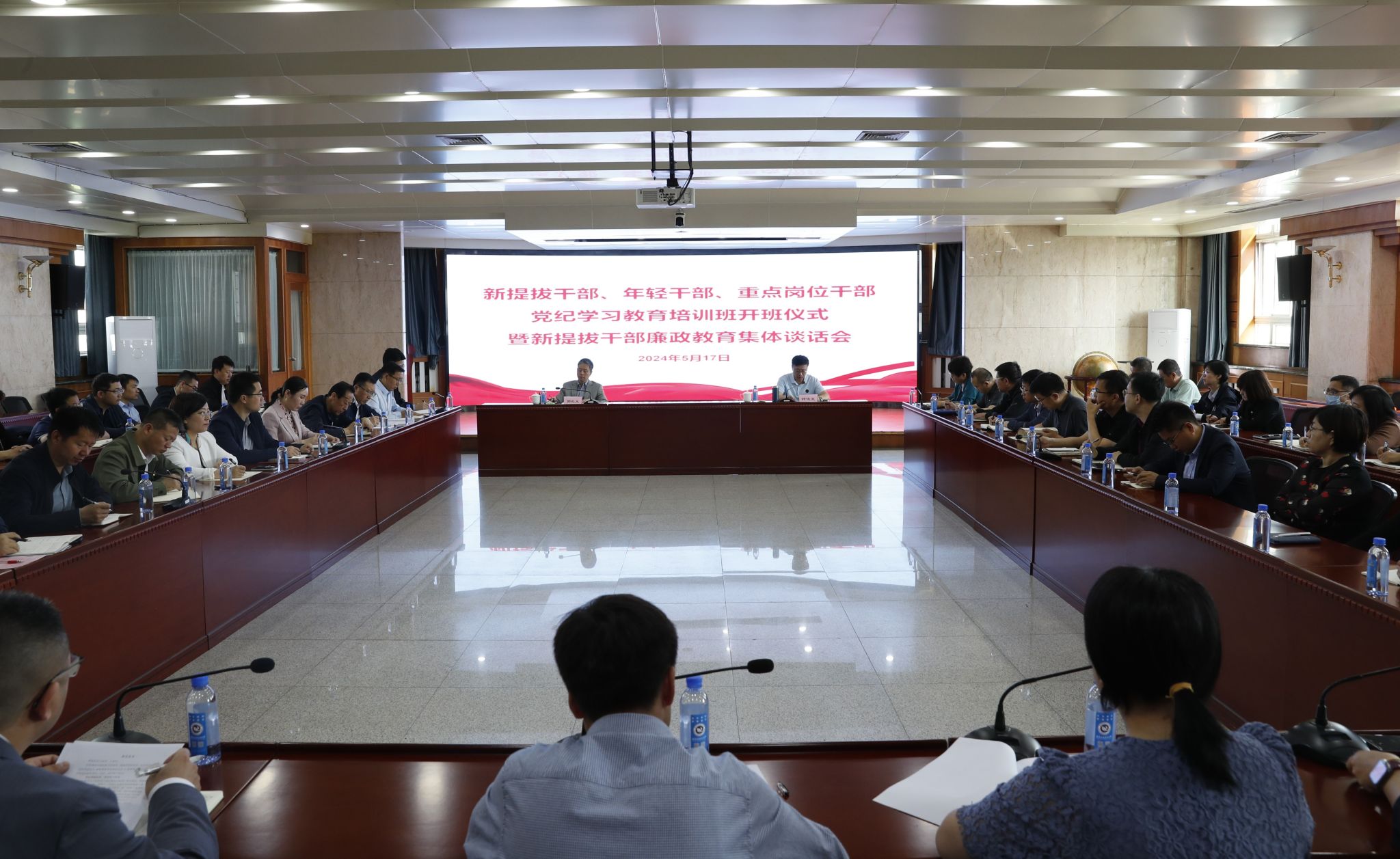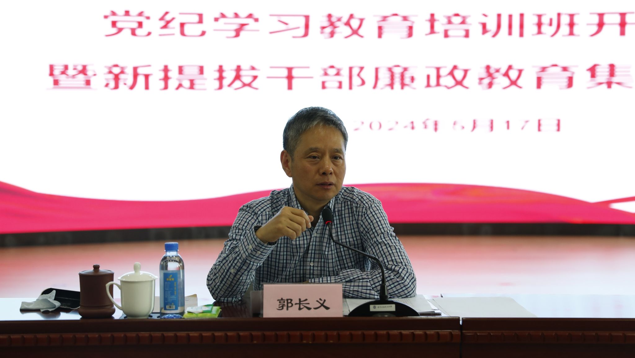 为扎实推动党纪学习教育走深走实,落实全面从严治党要求,进一步激励干部履职尽责,强化纪律意识,5月17日上午,学校在第七会议室举办了新提任干部、年轻干部、重点岗位处级干部党纪学习教育培训班开班仪式暨新提拔干部廉政教育集体谈话会,校党委书记郭长义出席会议,新提任干部、年轻干部、重点岗位处级干部参加会议,会议由校党委副书记钟俊生主持。